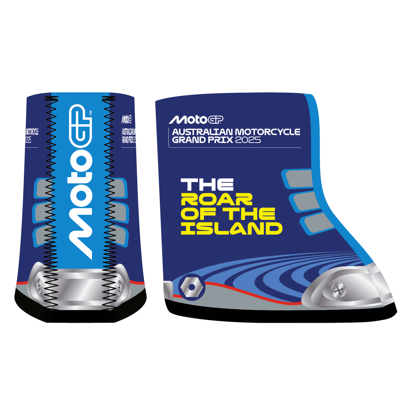 The 2025 Australian Motorcycle Grand Prix 'Shooee' Coldy Holder features a playful full colour print inclusive of this years official event logo, the MotoGP™ logo, the Phillip Island Curcuit logo and the official event slogan.